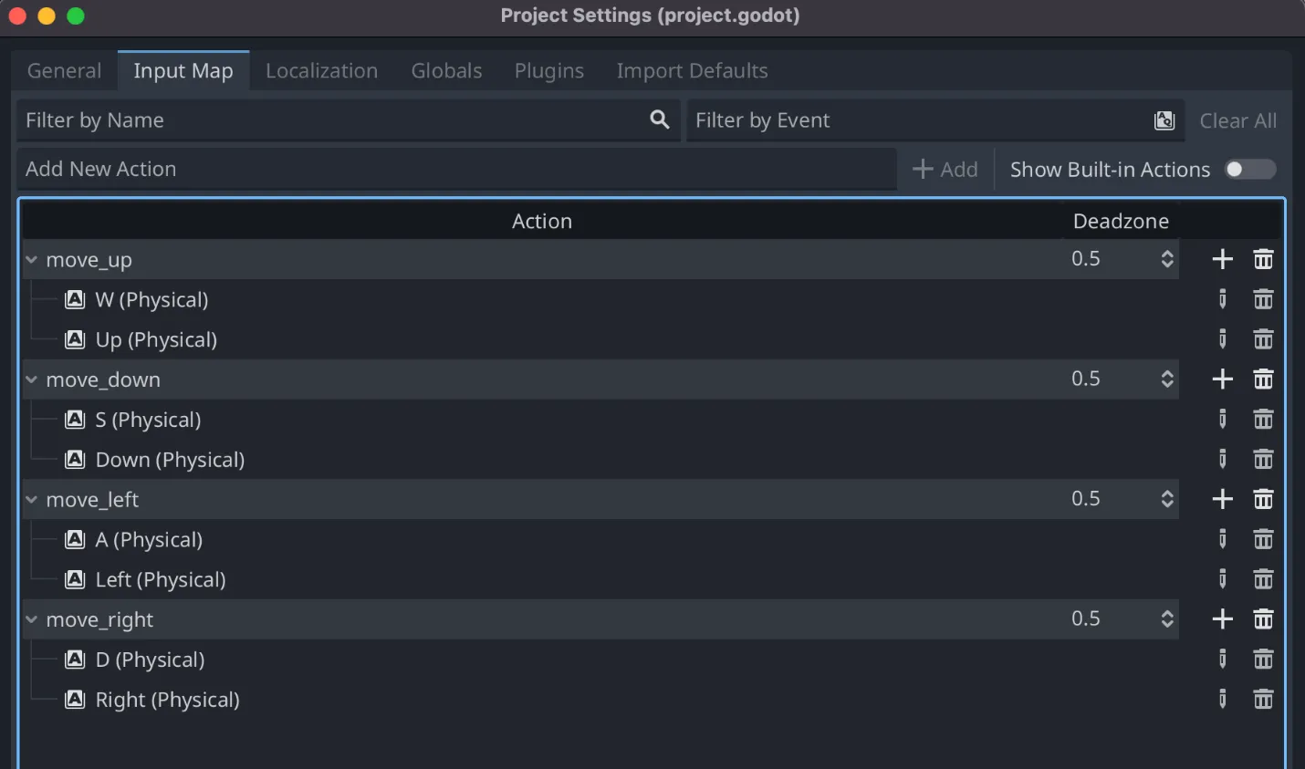 Godotの「Project Settings」で、「Input Map」から