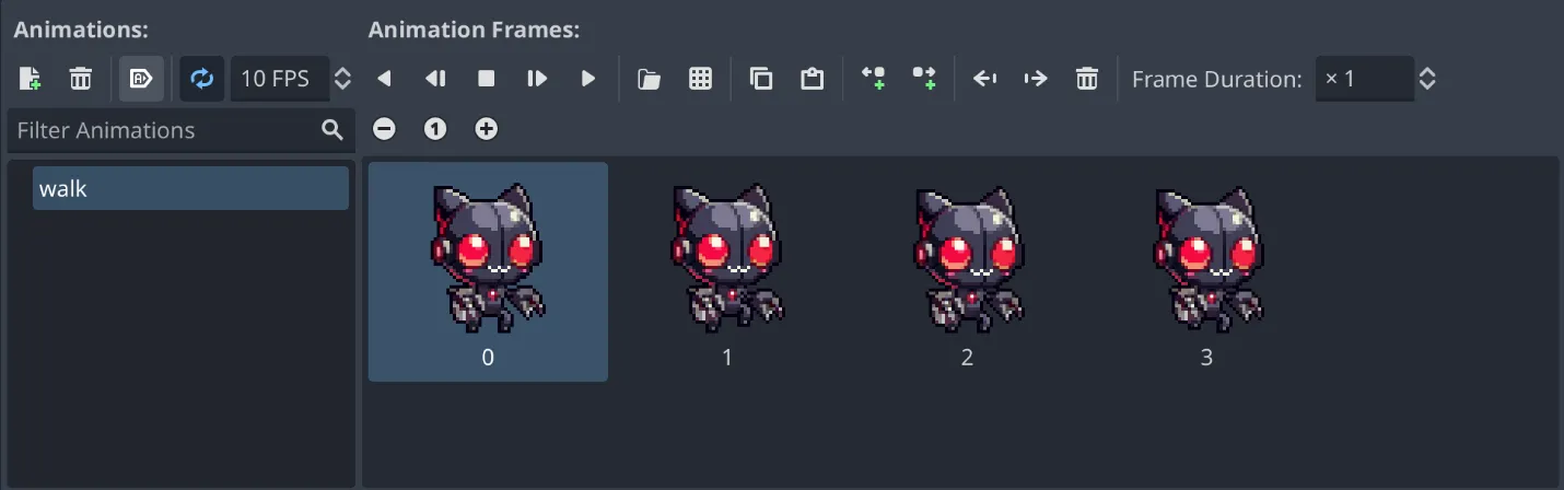 - 各アニメーションに動かしたいフレームをドラッグ&ドロップしてください。