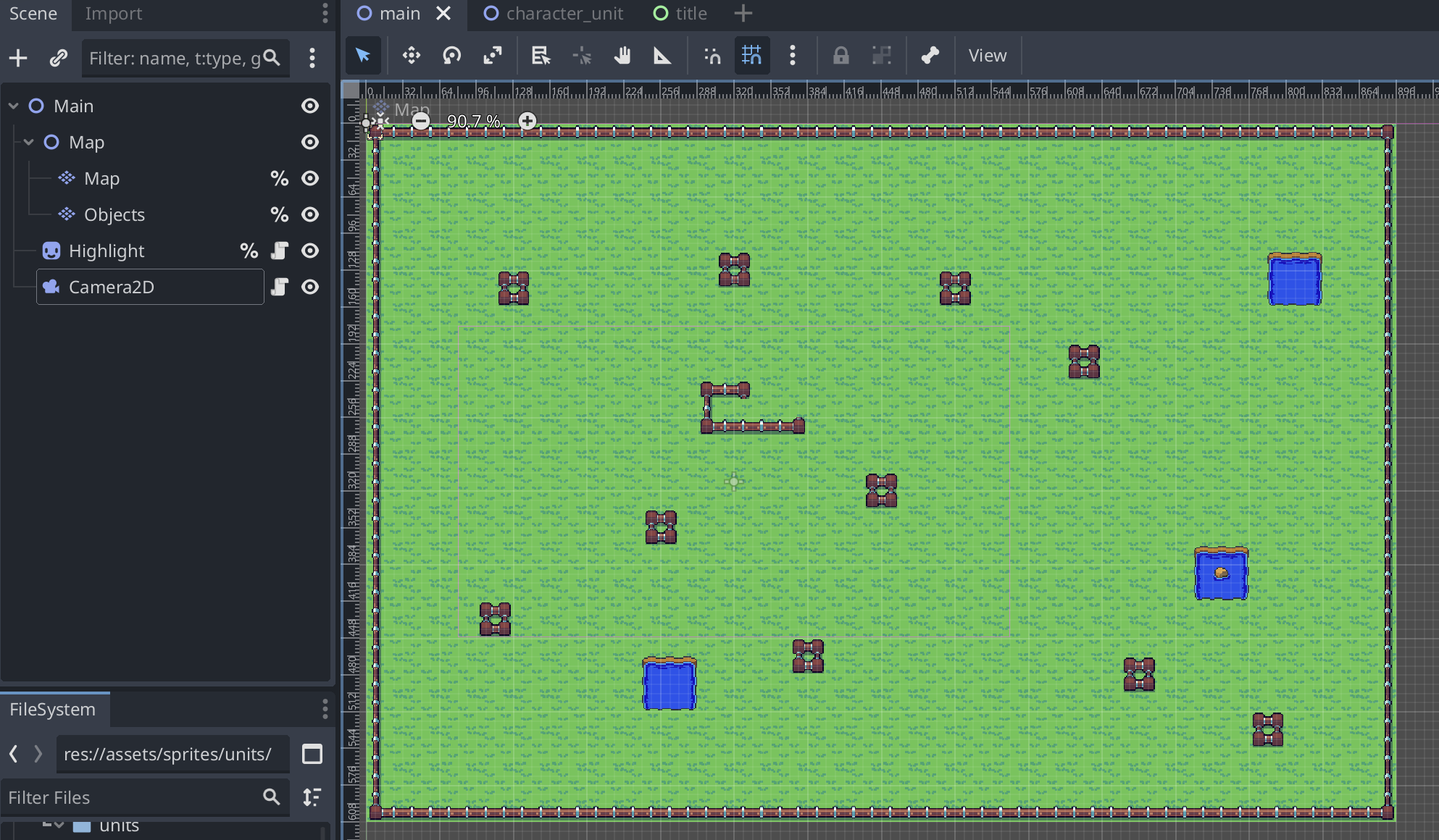 Objects という名前にし、建物や壁などの移動不可能なオブジェクトを配置。