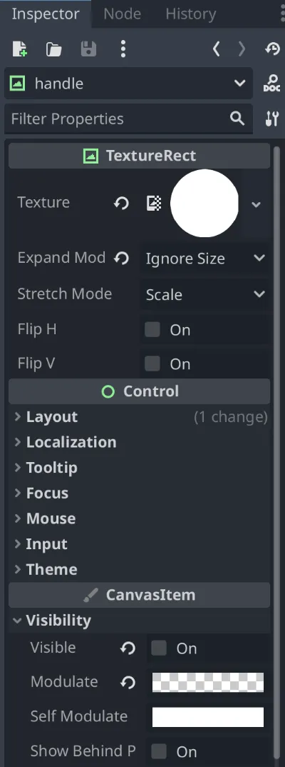 Control ノードの子ノードとして以下の構造を追加します:- TextureRect (名前:
