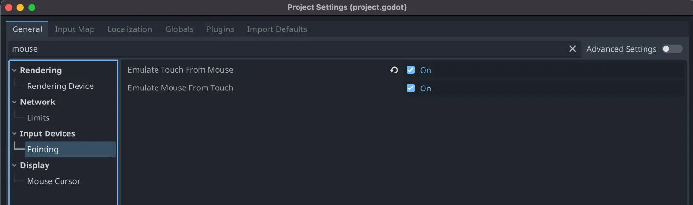 Project SettingsでEmulate Touch From Mouseのチェックをチェックします。