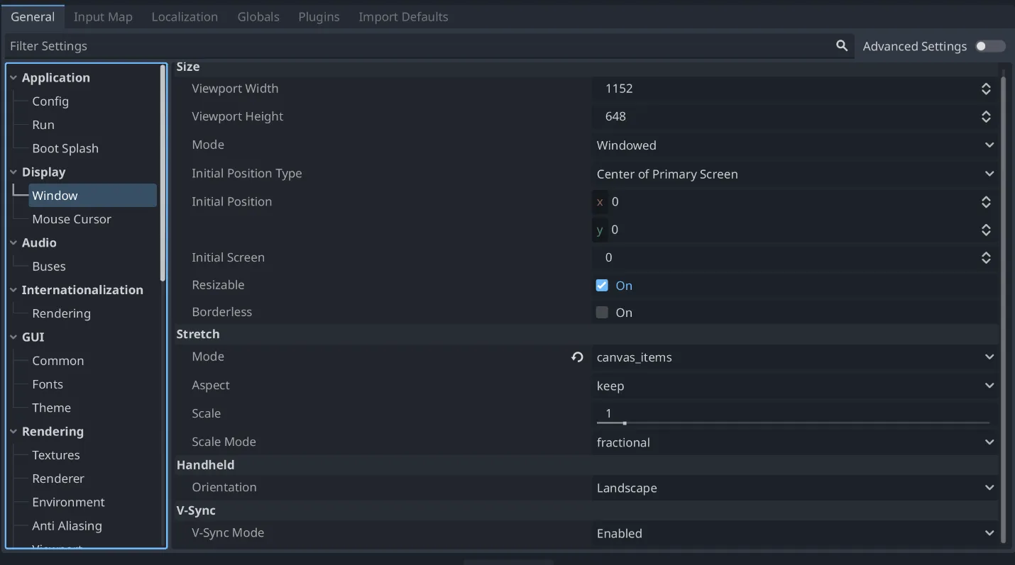 Project > General > Display > Windows > Modeをcanvas_itemsに変更します。